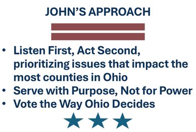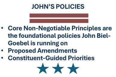 John Biel-Goebel’s platform is built on Core Non-Negotiable Principles that restore constitutional balance and economic fairness, Constituent-Guided Priorities shaped by Ohioans through transparent scoring, and Proposed Amendments that strengthen ethics, clarify powers, and prevent future abuse of authority.