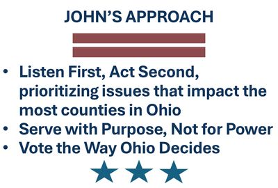 John will do his level best to vote in line with the totals of this score system, allowing the collective voice of Ohio’s people to dictate representation, not personal ambition or political calculation.