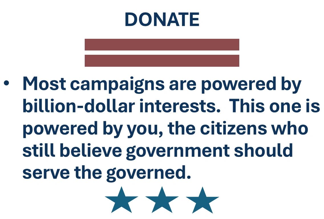That means saying no to party machines, corporate PACs, and special interests — and yes to a campaign funded only by ordinary Americans.